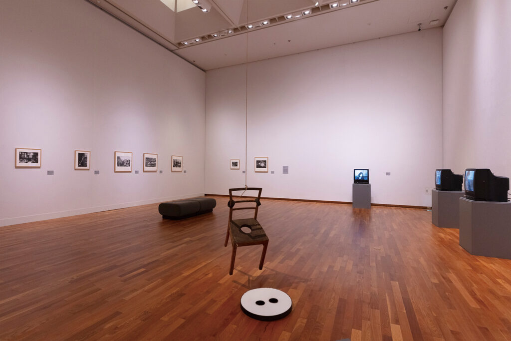 愛知県美術館の「アブソリュート・チェアーズ 現代美術のなかの椅子なるもの」は、さまざまな形で現代美術に摂取された椅子の作品を提示することで、椅子と、腰かける私たちの身体について問いかける企画だった。ところで、本展には「障害と政治」という裏のテーマが見え隠れする。ダラ・バーンバウムの映像《座らされた不安》における自閉症者を連想させる常同行動を椅子の上で繰り返す女性の姿や、東大全共闘時の安田講堂内にいた渡辺眸が撮った写真集《東大全共闘 1968-1969》におけるバリケードにされた椅子、女性たちが議論する場で腰かけている椅子は、着座以外の使途や、対話の媒介としての役割など、椅子の多面性を示している。椅子は学校の教室のように人の行動を制約することもあれば、制約からの解放をもたらすこともあるのである。